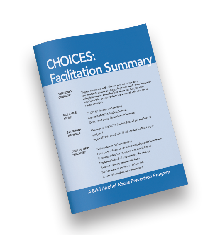 For programs that have a copy of the CHOICES Facilitator Guide, the Facilitation Summary provides an easy way to ensure that every CHOICES instructor has the facilitation information they need at their fingertips. The Facilitation Summary provides a brief, side-by-side summary of the facilitation process for each page of the CHOICES Interactive Journal.